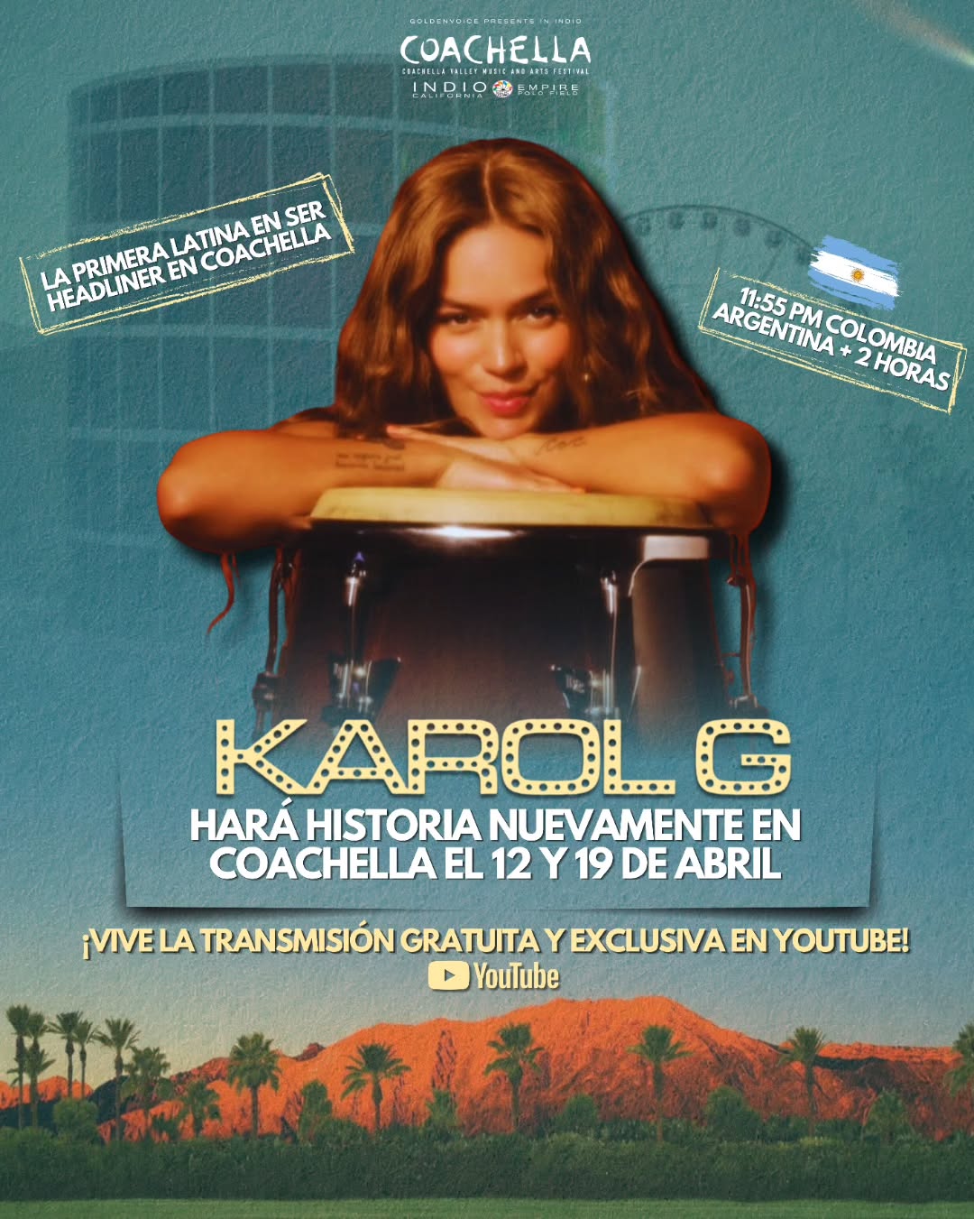 El Coachella 2026 vive uno de sus momentos más importantes con la participación de la superestrella colombiana Karol G, quien no solo forma parte del lineup, sino que encabeza el festival, marcando un hito para la música latina.