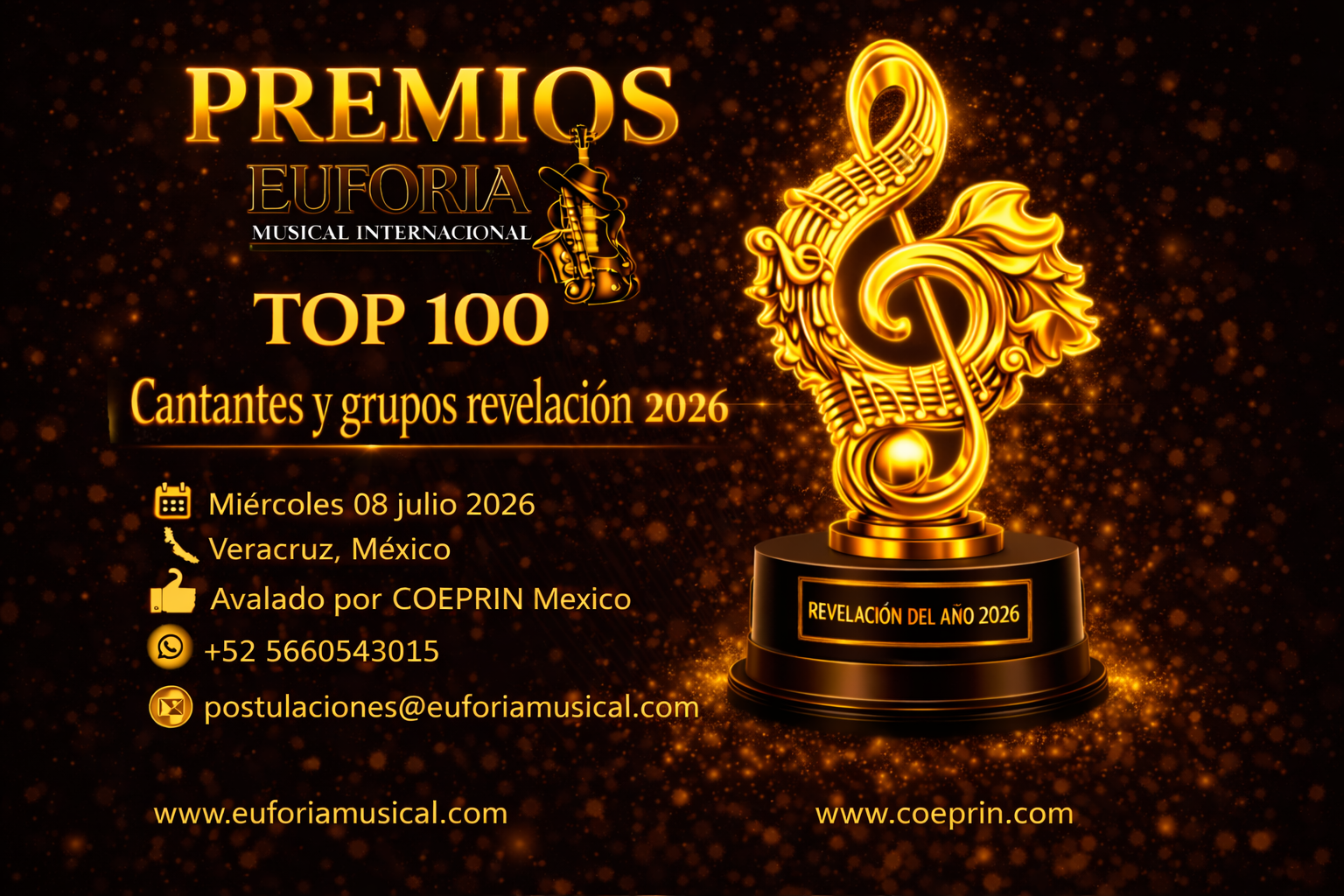 PREMIOS EUFORIA MUSICAL – TOP 100 GRUPOS Y CANTANTES REVELACIÓN DEL AÑO 2026